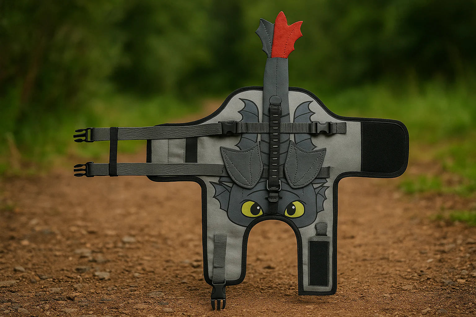 Stand out with a playful cartoon dragon design that adds a touch of magic to your dog's beachwear.